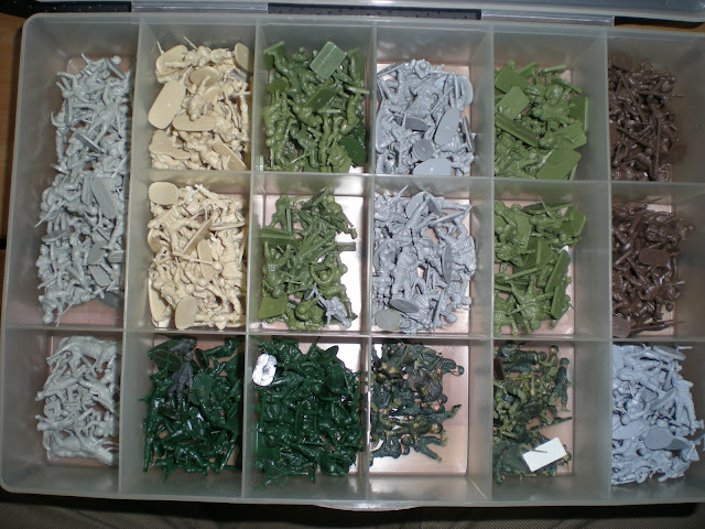 As part of my clear out, the one that led to my getting back into modelling, I consolidated a lot of our soldiers into plastic containers. While I figure out what to do about my vehicles, I have decided to just paint up a whole bunch of the men. They have been lying around for over ten years, so why not!